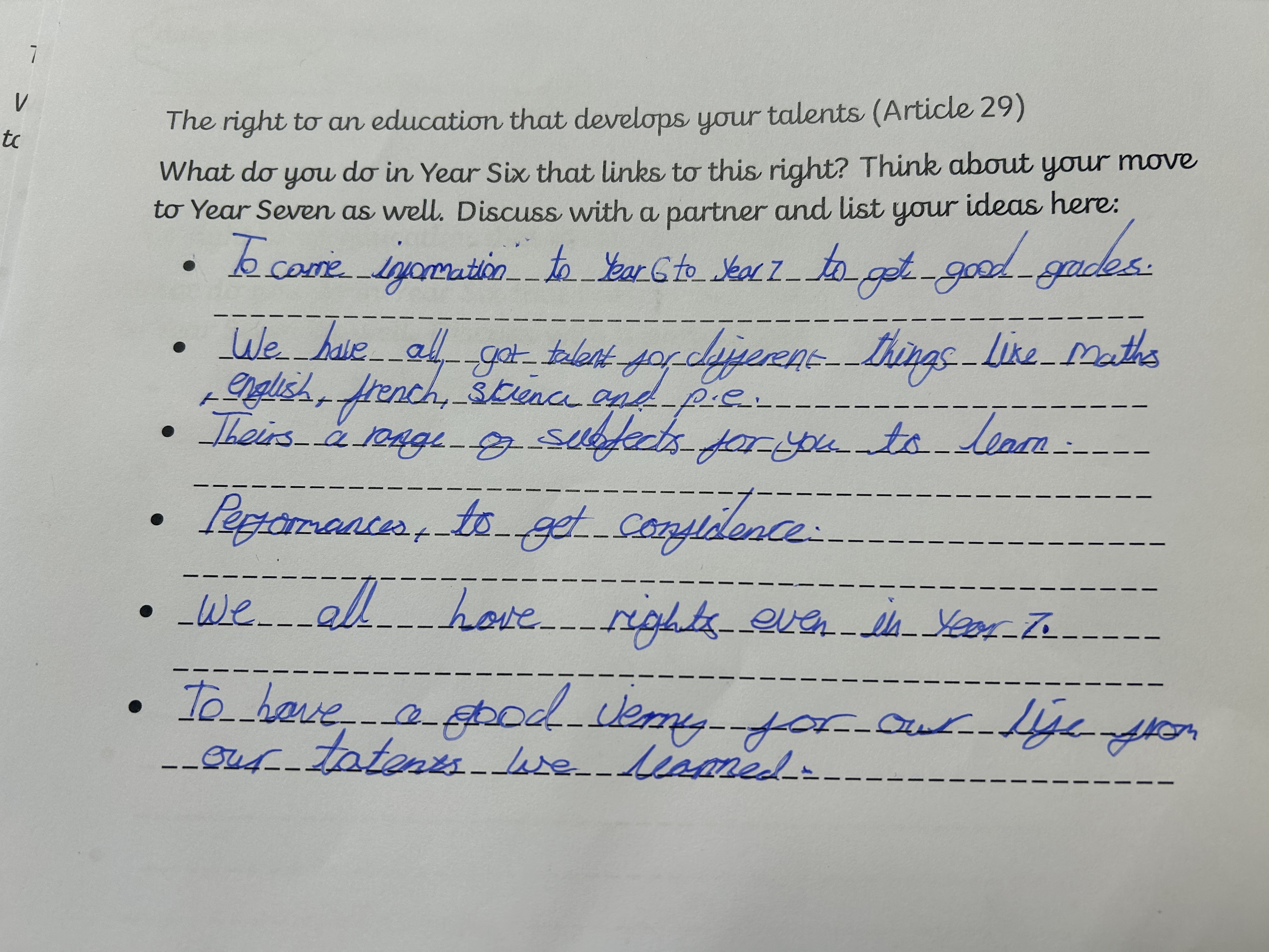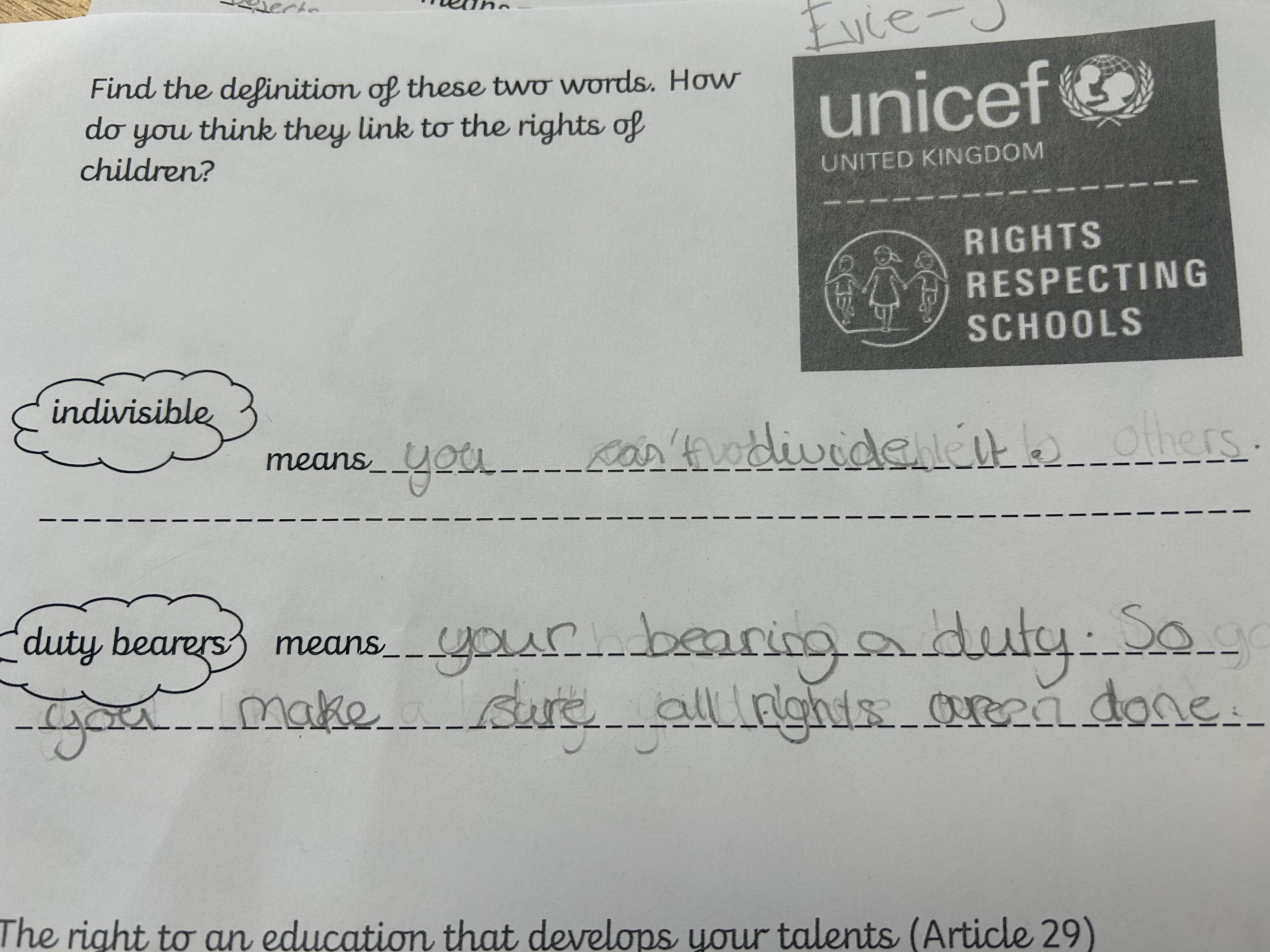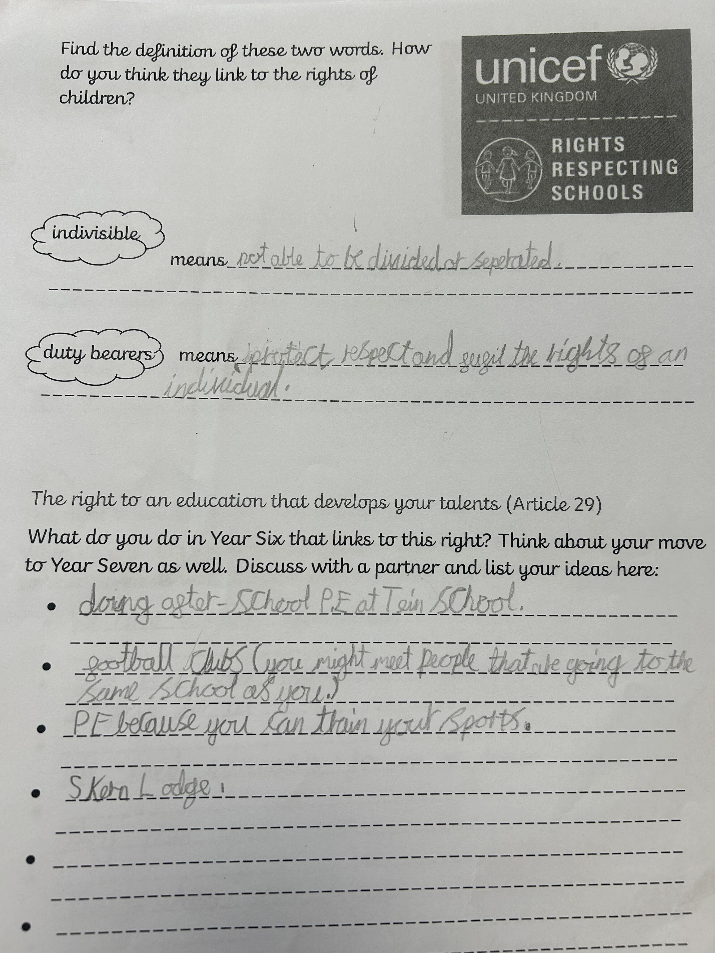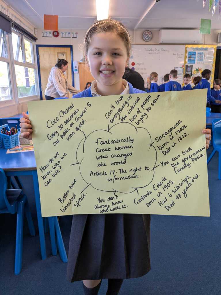 You may have noticed lots of our rights respecting blog posts have been mentioning a ‘Right of the Term’ recently. This is something that has been set up so each year group can learn about all the different articles on the convention on the rights of the child (see more here https://www.unicef.org.uk/what-we-do/un-convention-child-rights/) without feeling overloaded – there are over 40 of them after all! As the children move up through the school they will access different rights in different year groups and revisit ones they have covered before to ensure they are embedded. We are working hard to include our rights of the term in our every day learning and we will be introducing more information about them through assemblies and worships.