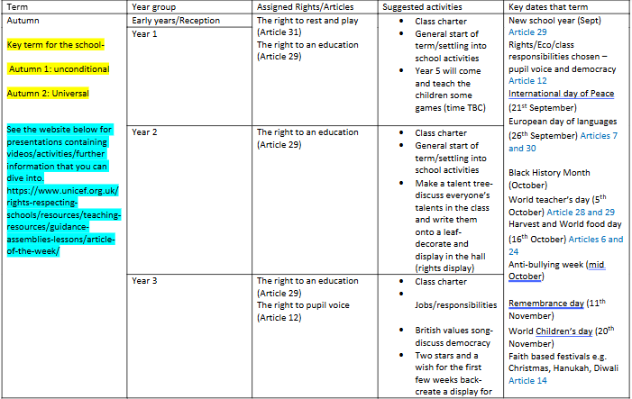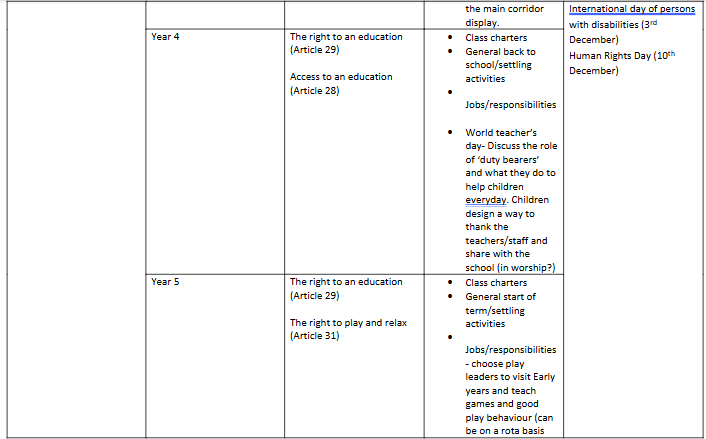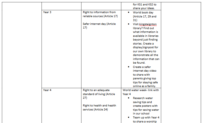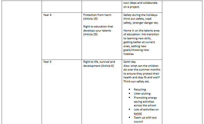 Below is a copy of the rota so you can see what rights will be coming up for your child’s year groupa and the sorts of activities that might be covered (these can be swapped and changed to fit the curriculum as it comes around so please take them as a suggestion only).